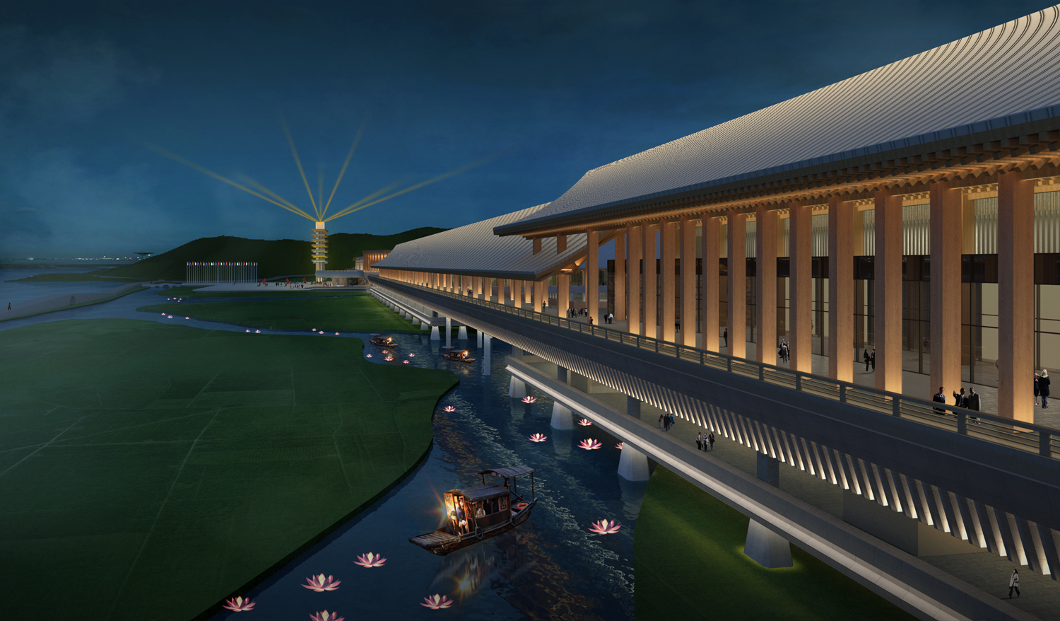 会议中心核心地块占地面积约70公顷,建设内容包括会议场馆、配套酒店及商业设施等,总建筑面积约28.66万平方米。东钱湖会展新城片区,是落实东钱湖世界湖区发展要求,落位区域重大项目的重要承载区域。项目位于东钱湖畔,将依托东钱湖得天独厚的资源禀赋、深厚的文化底蕴,充分利用湖景、山景、河景,建设首脑峰会级别的国际高端会议场馆。