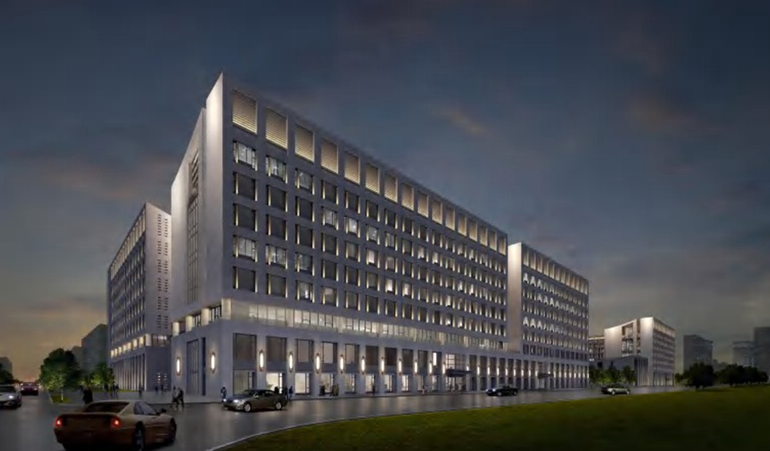 通过对建筑内外立面区分主次的表现,沿街立面表达出 其庄重大气的办公气质,内庭立面表达其内秀精致的内 涵底蕴,整体灯光设计在完整表达项目的场所精神外, 重点刻画突出建筑细部的结构特色。