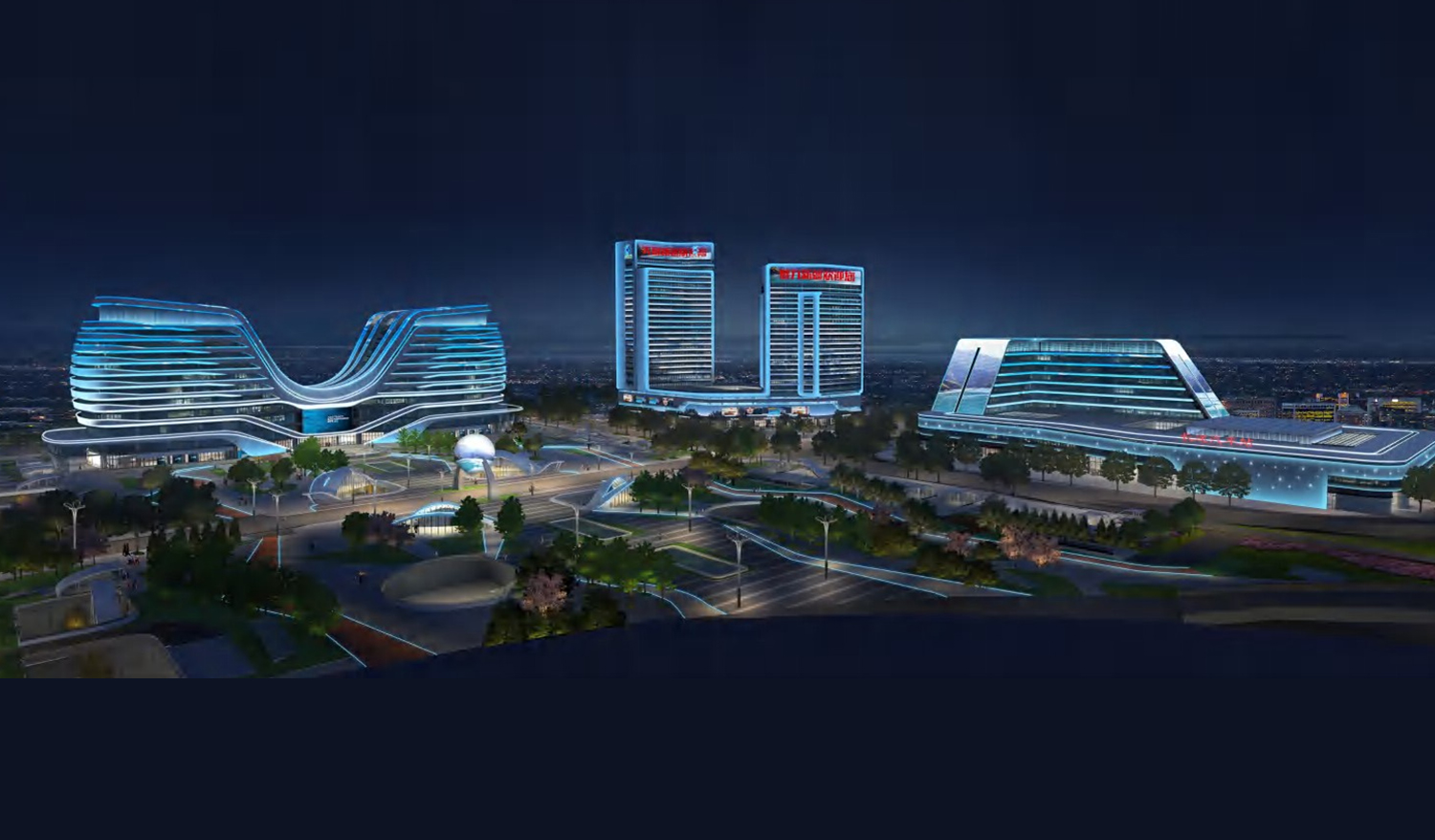 高铁服务中心以白鹭为设计概念,为表现艺术光的白鹭翱翔主题,在白 鹭头部的长翎饰羽和全身羽毛都尽力做到见光不见灯,展示自然的优美 形态,以灯光将建筑立面的翱翔创意造型烘托,外部线条在灯光下更显 舒展流畅。循照明方式以见光不见灯的主旨,着力展示幕墙里面的美感, 局部位置通过专项灯具设计赋予灯效特殊光感。建筑本身以白鹭翱翔的 优美与潇洒矗立优越城市区位,前沿的灯效展示也将给予往来的城市人 群华丽的视觉享受。