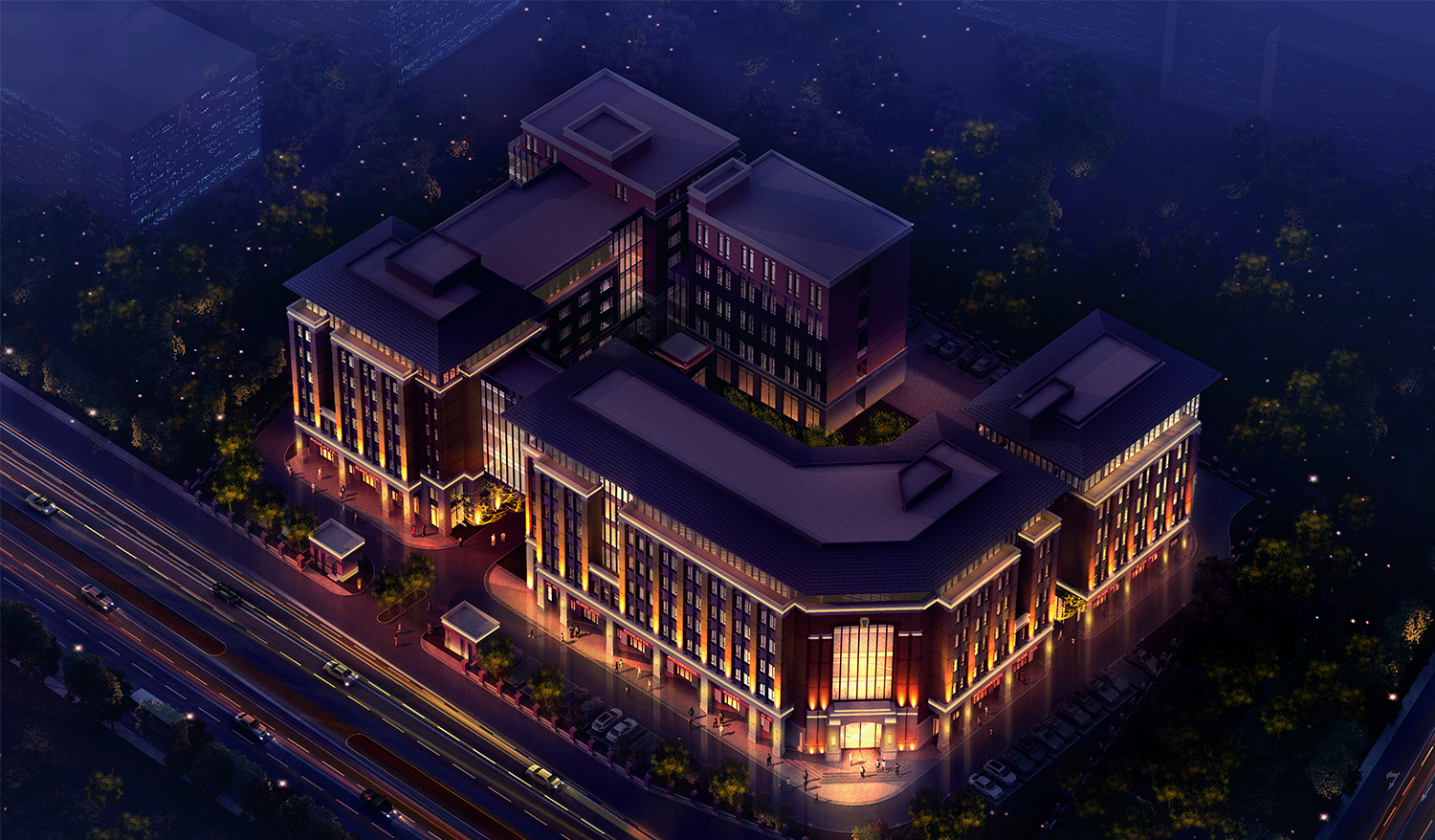 北京亦庄久其软件研发园位于北京经济技术开 发区河西区,是集软件研发及云计算等技术运 用于一体的高科技产业园。 建筑本身的酒红色 套图面砖与三段式经典结构,在灯光处理上化 繁为简,精炼的光照处理手法,展现出建筑在 夜晚独有的风格和色彩。