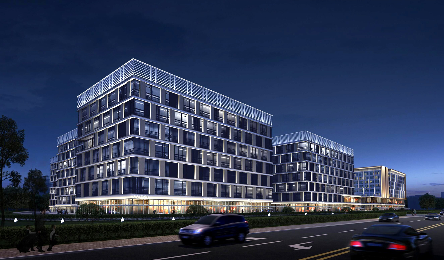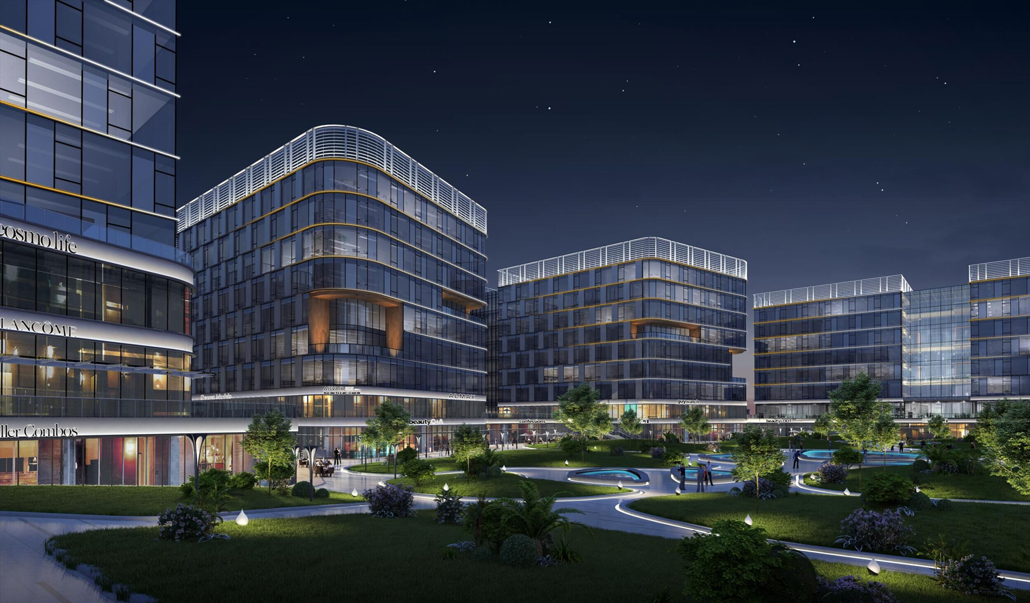 源头之孕育,花苞之绽放,均是层层向外传播,生生不息, 通过对建筑设计理念的深刻把握,将园区内部的中心花园立 面寓意花瓣的花芯,为活力之心、自然之光,柔和的灯光与 花园景观形成有机的结合;园区外部的外侧沿街立面寓意花 瓣的外沿,富有生命力的灯光流动使园区和周边环境有机融 合为一体,体现出自然生态的形象特征。