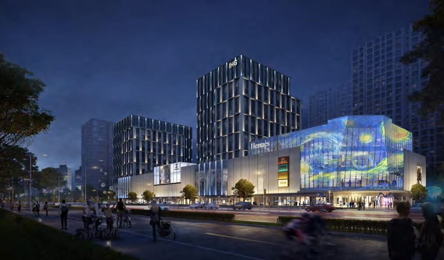 通过前期对建筑设计以及建筑细节的提 炼,进一步挖掘光与钻石所产生的精致 光感和晶莹剔透的绚烂之光,提出“夜空 下的璀璨之光”的灯光设计主题,表达本 项目精雕细琢的高端档次和品质感。